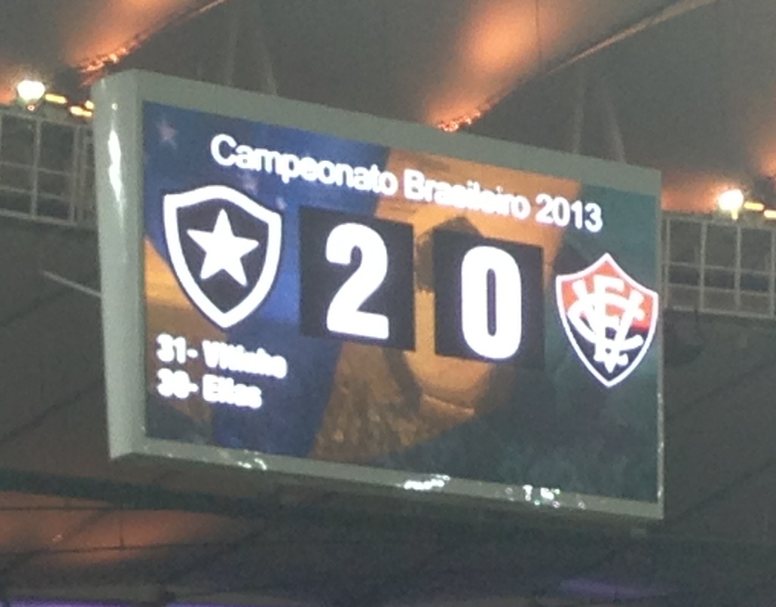 Último jogo – 18/08/2013 – Botafogo 3 a 1 (Campeonato Brasileiro), Canindé.